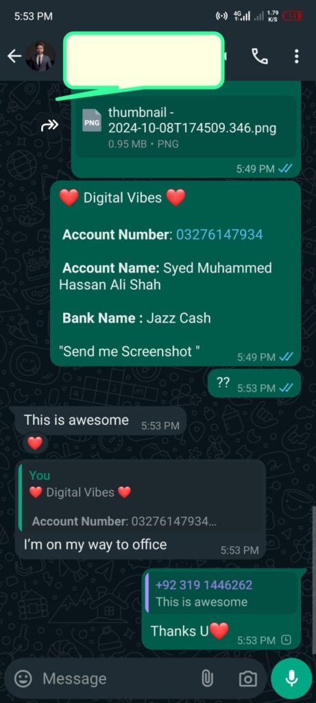 - Aap hume bank transfer ya JazzCash/EasyPaisa ke through payment kar sakte hain. Payment confirm hone ke baad aapka package activate ho jayega.